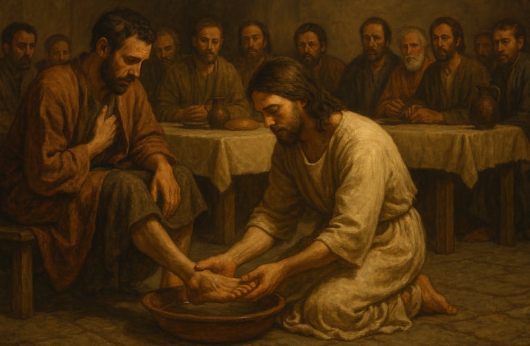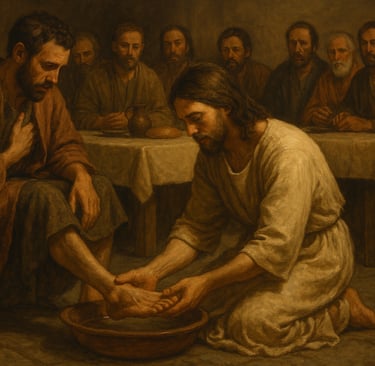 You and your twelve best friends go into a city. The people are cheering for you and treating you like they do royalty that just got back from victory. But you know everything, so you know what their cheers will soon turn to. You stay in the town for a week, and for your standards, you stay pretty low‑key, mainly spending time with your friends and doing a couple of miracles; after all, you are still Jesus. Thursday night comes, and you have a meal with your friends. Like I already mentioned, you know everything, so you know what will happen later that night, but for now you just want to spend time with your friends, even though you know that one of them is planning to betray you. In a lesson of humility and love, you get your friends together to wash their feet. Peter tries to refuse, but you don’t let him.